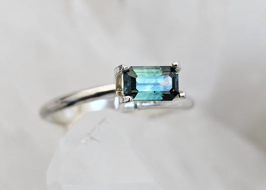 0.79 ct Emerald cut - Green leaning teal parti-colour natural Australian sapphire