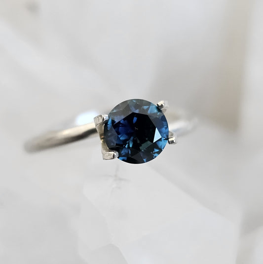 0.67 ct Round brilliant cut - Mid blue-parti natural Australian sapphire