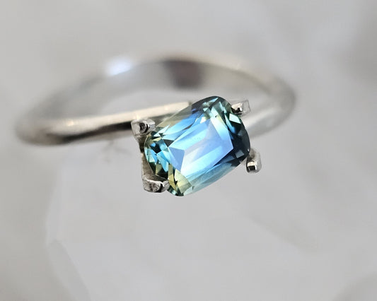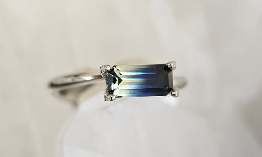 1.43 ct Emerald cut - Light blue + teal parti-colour natural Australian sapphire